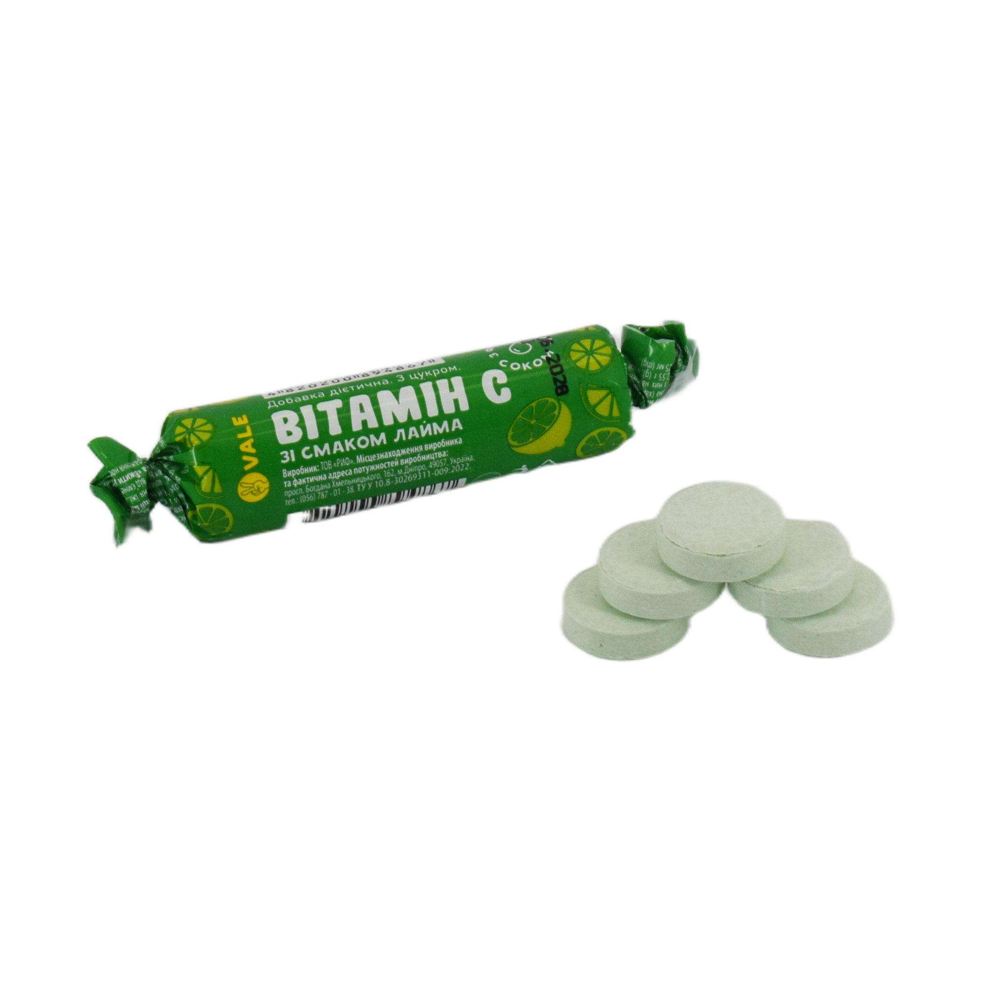 1 шт. [3 г (g)] у формі таблетки містить 25 мг (mg) вітаміну С (L-аскорбінової кислоти).