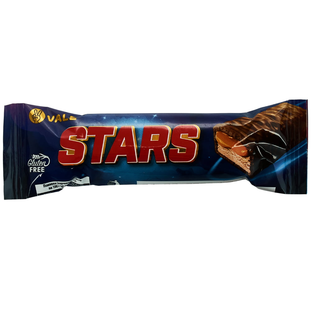 Хто з нас не любить поєднання нуги і карамелі, а якщо це все буде в молочному шоколаді? Смакота! Так ось, ми створили ідеальний батончик STARS. Він такий смачний і зоряний, що після того, як його спробуєш, то ти ніколи не забудеш цей смак. Хочеш розслабитися після важкого робочого дня або просто поласувати смачненьким? У складі батончика немає глютену.